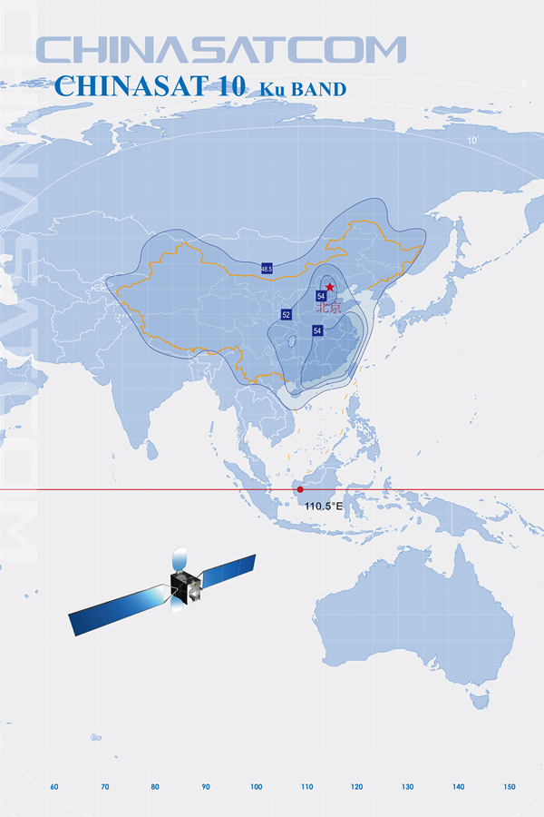 中星10號衛星采用我國自主研發的東方紅四號衛星平臺,從國外引進有效載荷系統,提供30個C頻段和16個Ku頻段轉發器商業通信服務。中星10號衛星于2011年6月在中國西昌衛星發射中心發射,用于接替中星5B衛星在東經110.5度軌道位置工作,以滿足中國及西亞、南亞等國家和地區用戶的通信、廣播電視、數據傳輸、數字寬帶多媒體及流媒體業務的需求。