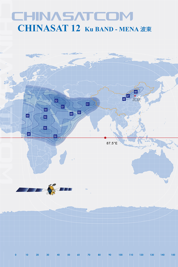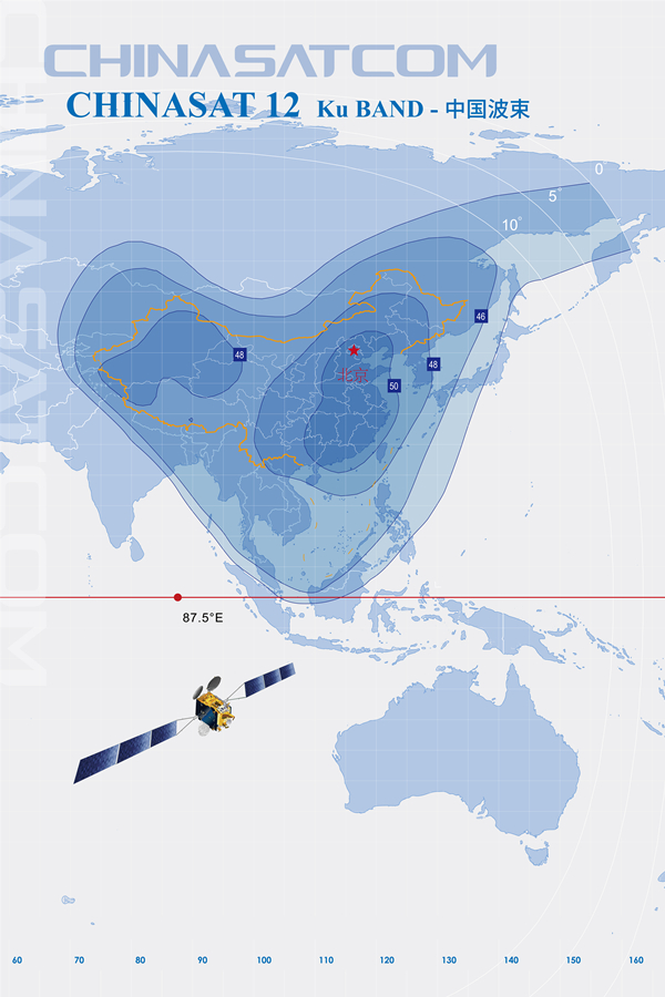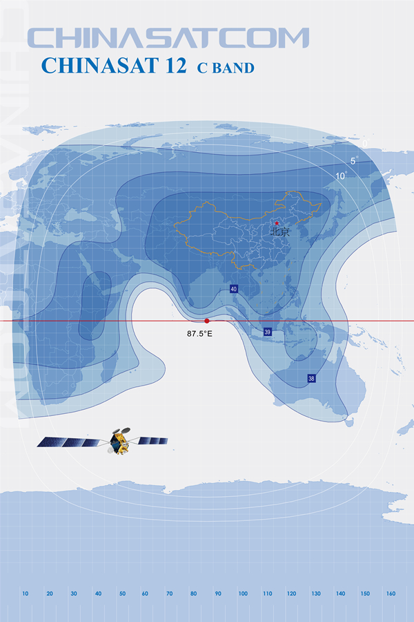 中星12號衛(wèi)星于2012年11月由長征三號乙增強(qiáng)型運(yùn)載火箭發(fā)射,提供47個(gè)C和Ku頻段轉(zhuǎn)發(fā)器商業(yè)通信服務(wù),以滿足中國、東亞、南亞、中東、東歐、非洲、澳大利亞和中國海域、印度洋區(qū)域用戶的通信、廣播電視、數(shù)據(jù)傳輸、數(shù)字寬帶多媒體及流媒體業(yè)務(wù)的需求。