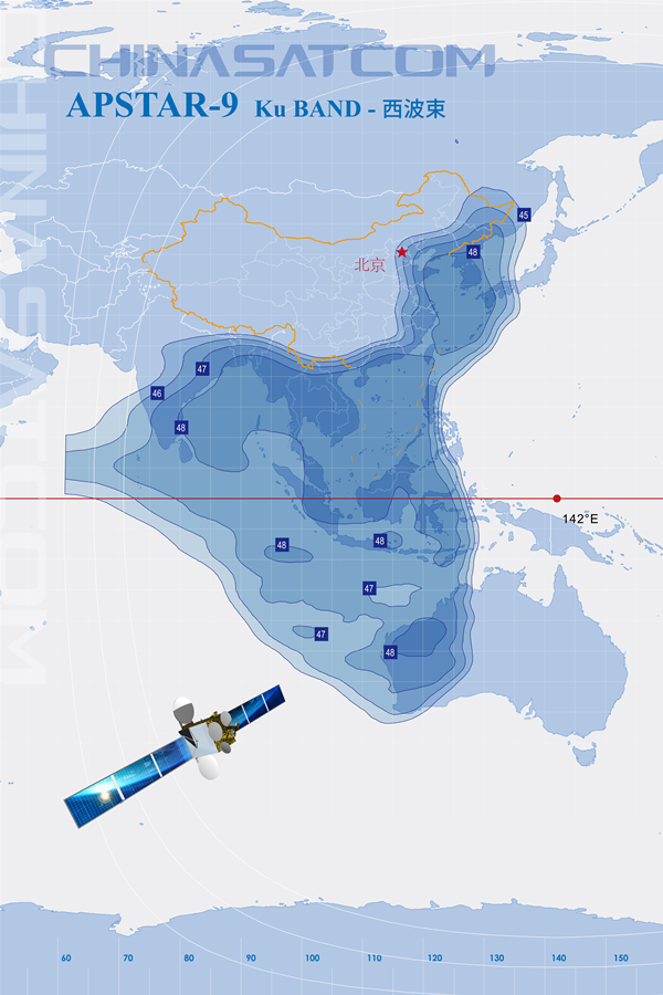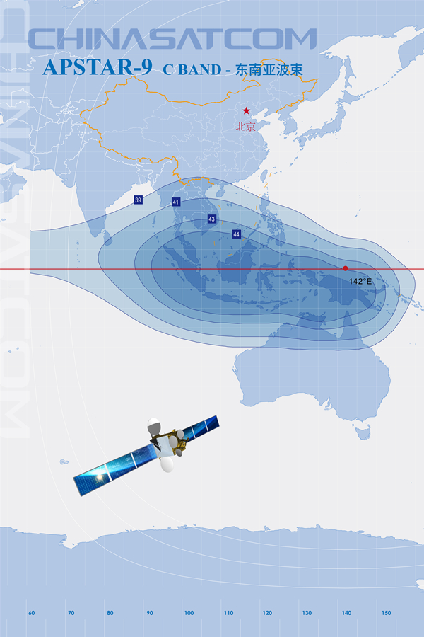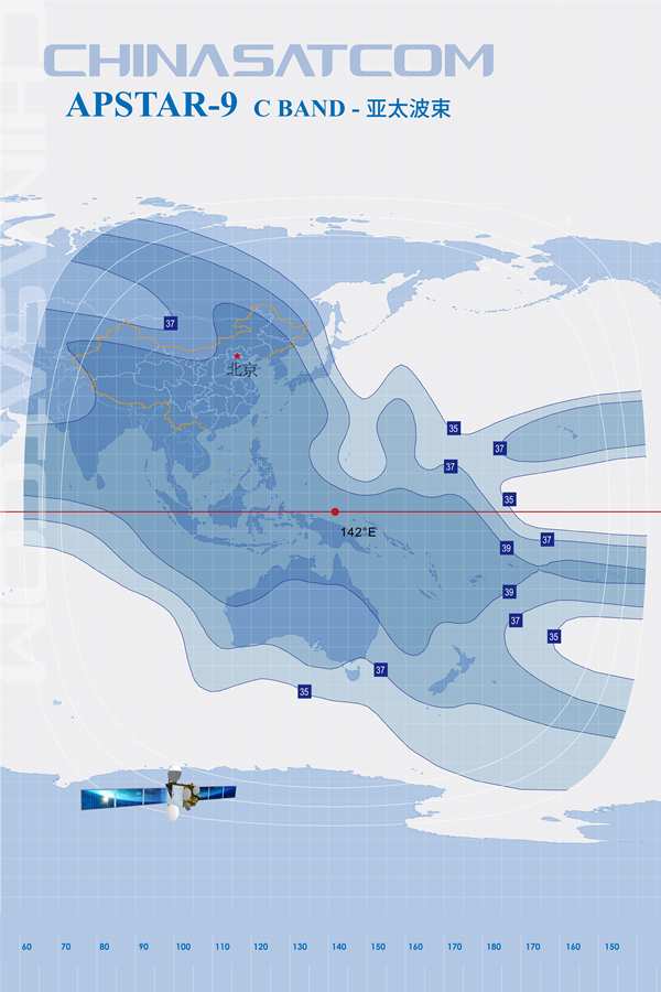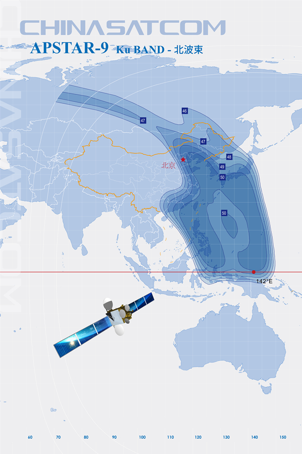 亞太衛星公司采購的亞太9號衛星,是基于中國航天科技制造的東方紅四號衛星平臺的衛星。亞太9號衛星搭載32個C波段轉發器和14個Ku波段轉發器,計劃發射到142E軌道位置以接替亞太9A衛星。