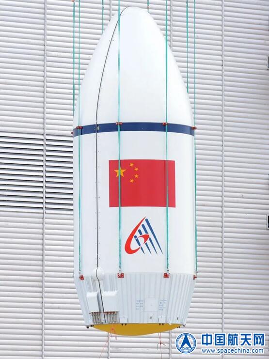 吊裝星罩組合體(國旗下方圖案為長六改火箭標志)