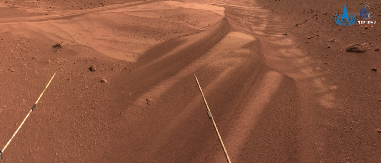 圖為祝融號火星車進(jìn)入冬季休眠狀態(tài)前拍攝的巡視區(qū)影像。圖片來源:國家天文臺