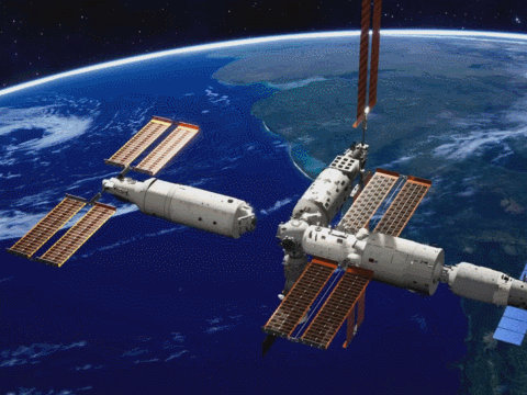 夢天實驗艙與空間站組合體交會對接示意動畫