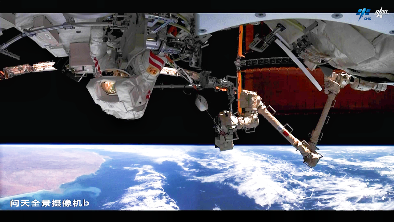 本次出艙活動另外一項(xiàng)任務(wù)為安裝艙外載荷暴露平臺支撐桿。航天員使用專用電動工具擰松支撐桿上螺釘,將其調(diào)整為支撐狀態(tài)并擰緊緊固螺釘。安裝完成后,夢天艙上2個展開式的暴露平臺將獲得穩(wěn)定支持,具備安裝艙外載荷能力。