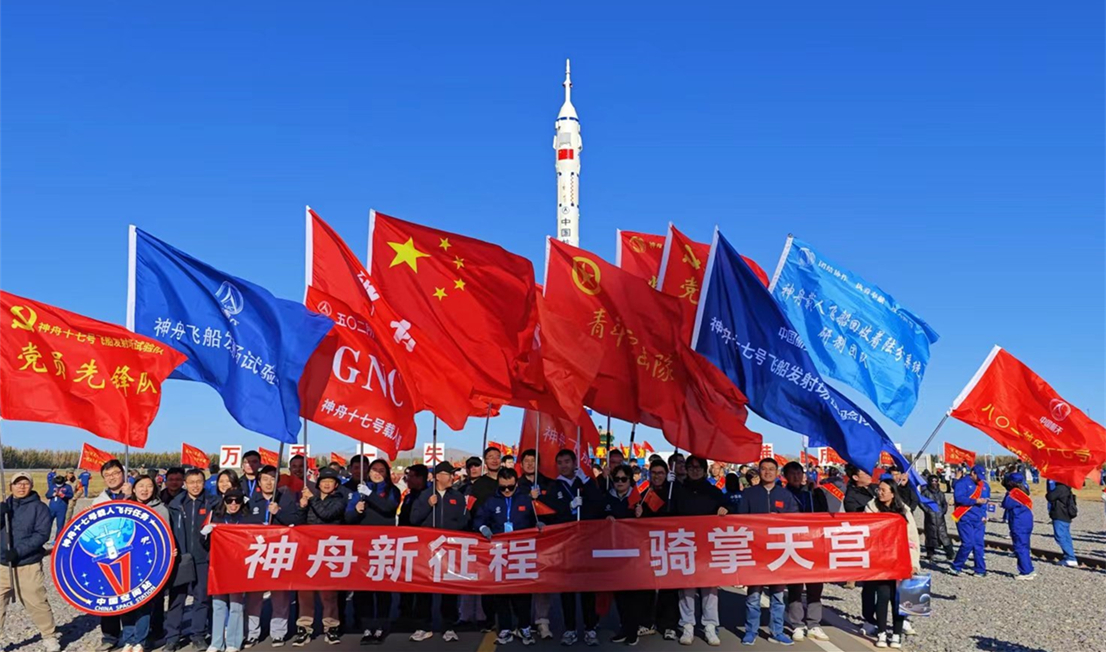 神舟十七号飞船与长征二号F遥十七火箭组合体转运至发射区