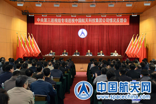 根據中央巡視工作領導小組部署,中央第三巡視組向中國航天科技集團公司反饋專項巡視情況。10月21日上午,中央第三巡視組組長李熙和副組長周清玉、陳善光向航天科技集團黨組書記、董事長雷凡培傳達了習近平總書記關于巡視工作的重要講話精神,并反饋了專項巡視情況。之后,李熙代表巡視組向航天科技集團領導班子進行了反饋,雷凡培主持會議并作了表態發言。