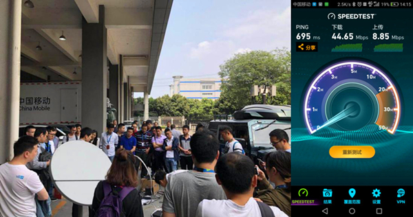 前不久,四川移動公司領(lǐng)導(dǎo)蒞臨四川西區(qū)樞紐,現(xiàn)場觀看了中國衛(wèi)通中星16號Ka頻段Ka LTE基站回傳應(yīng)用現(xiàn)場演示。現(xiàn)場使用四川移動應(yīng)急通信車上的LTE基站,通過中星16號固定站天線接入四川移動核心網(wǎng),手機(jī)4G上網(wǎng)測速達(dá)到下行44.65Mbps上行8.85Mbps的速率,互相撥打VoLTE電話語音清晰,MOS值達(dá)到與傳統(tǒng)應(yīng)急車同等數(shù)值,Ka高通量的優(yōu)勢得到了較好的體現(xiàn),得到了四川移動領(lǐng)導(dǎo)的認(rèn)可。
