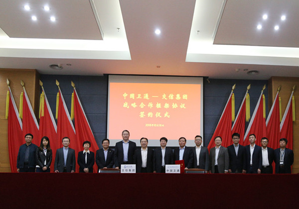 10月16日,中國衛通集團股份有限公司與交通運輸通信信息集團有限公司在北京地球站舉行戰略合作框架協議簽約儀式。雙方將在基礎設施互聯互通融合、交通專用衛星通信網、應用服務開發、市場項目拓展共享、商務協同、國際國內協調及資本等方面,建立長期、全面、深度的合作關系,發揮各自優勢,構建合作聯合體,共同服務于交通強國戰略、航天強國戰略、科技強國戰略。