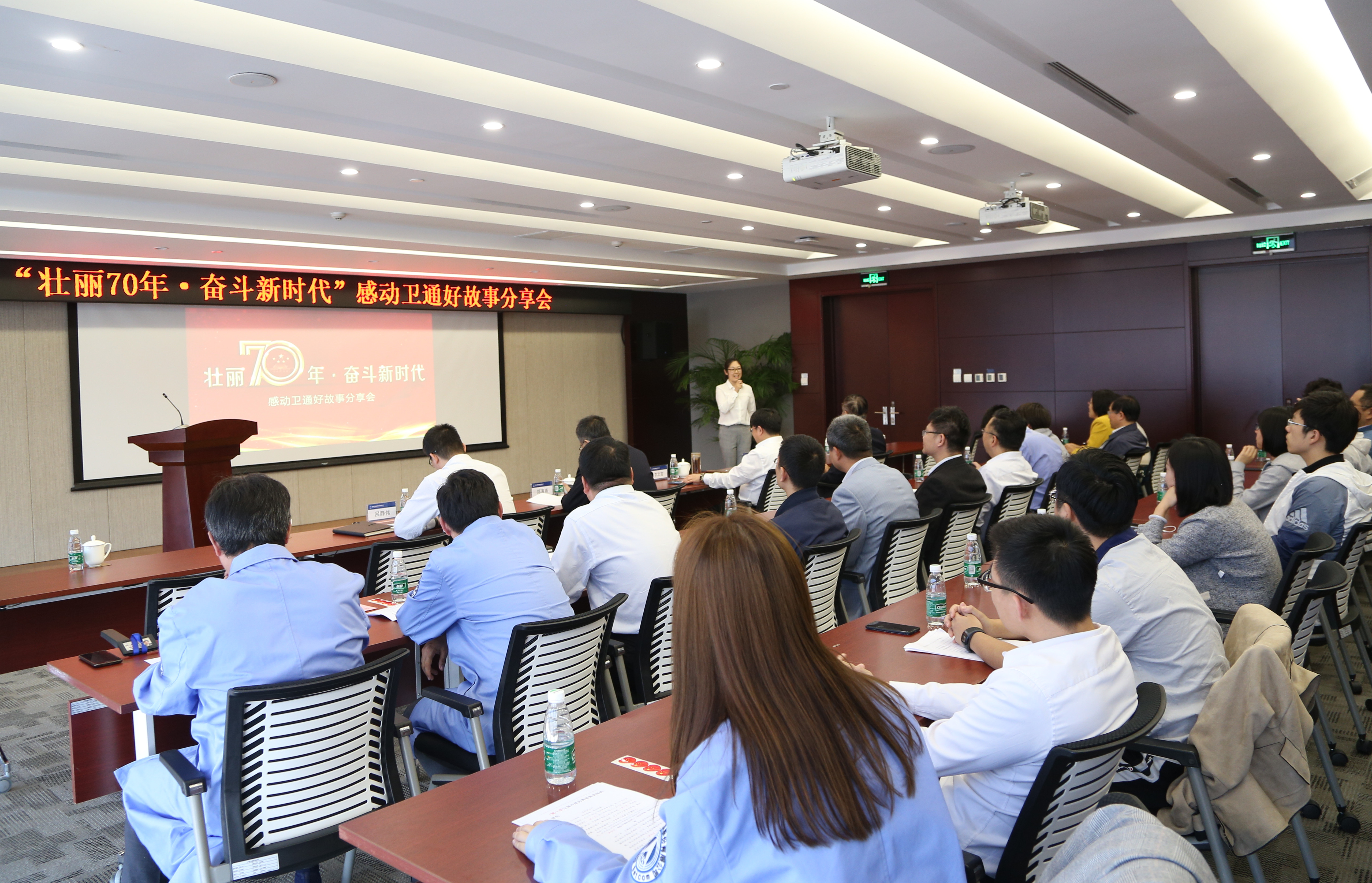 10月9日,中國衛通舉辦“壯麗70年•奮斗新時代”感動衛通好故事分享會,為慶祝新中國成立70周年、為公司凝心聚力轉型發展營造了積極的氛圍。公司董事長、黨委書記李忠寶,財務總監鄭海燕,副總經理汪鴻濱、呂靜偉出席活動,公司各部門領導及員工代表近百人在現場觀看了活動。