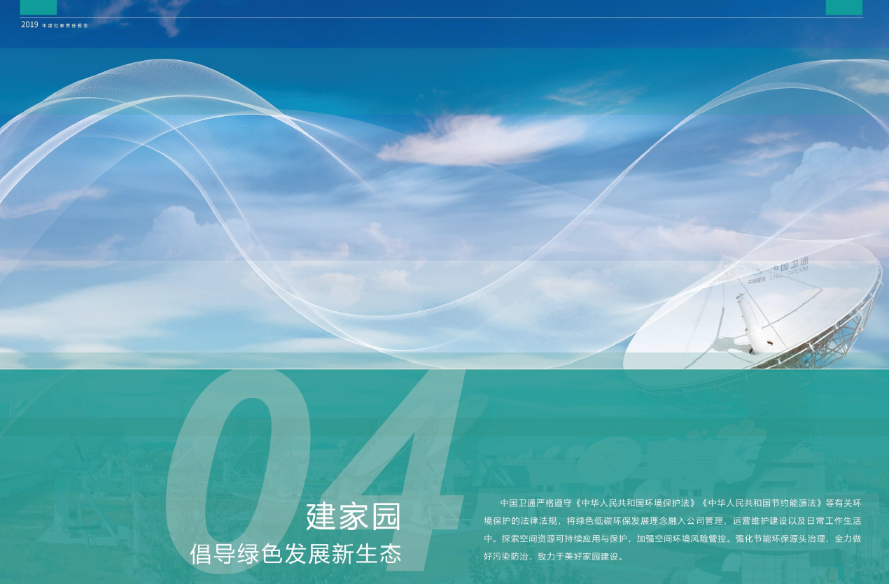 報(bào)告以“衛(wèi)星通信共創(chuàng)大眾美好數(shù)字生活”為主題,圍繞市場(chǎng)績(jī)效、社會(huì)績(jī)效、環(huán)境績(jī)效三方面,通過強(qiáng)治理、履責(zé)任、增活力、建家園、共命運(yùn)等5個(gè)篇章,全面披露了公司治理、安全運(yùn)營(yíng)、經(jīng)營(yíng)效益、客戶服務(wù)、產(chǎn)業(yè)引領(lǐng)、創(chuàng)新發(fā)展、合規(guī)經(jīng)營(yíng)、風(fēng)險(xiǎn)控制、員工發(fā)展、環(huán)境保護(hù)等情況。