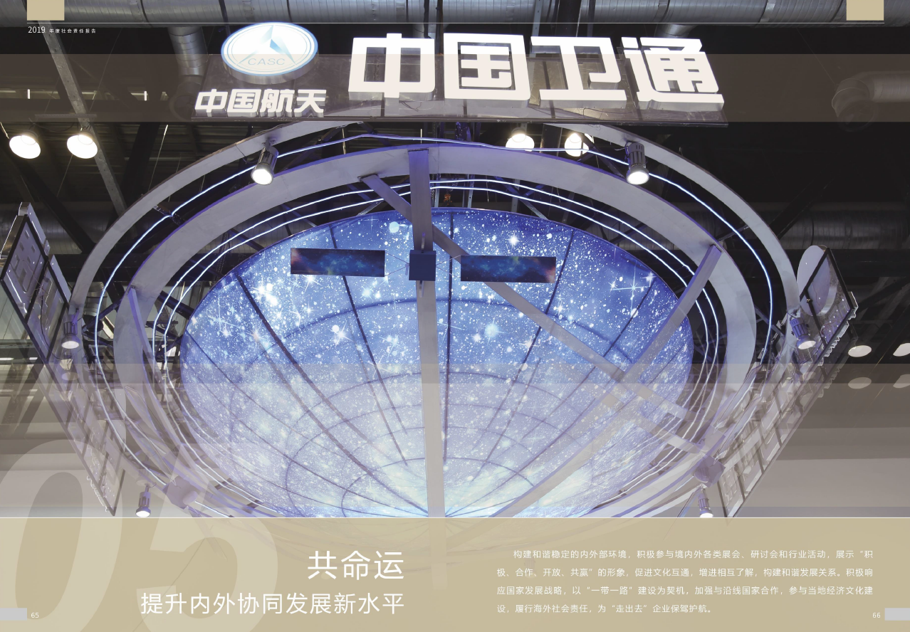 2020年8月28日,中國(guó)航天科技集團(tuán)有限公司所屬中國(guó)衛(wèi)通發(fā)布2019年社會(huì)責(zé)任報(bào)告,此次發(fā)布的報(bào)告是公司首份社會(huì)責(zé)任報(bào)告。