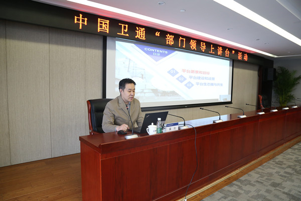 3月7日上午,中國衛通舉辦2021年第三期“部門領導上講臺”活動,董事長、黨委書記李忠寶主持,總經理孫京及公司領導班子、調研員以及中層干部等參加活動。