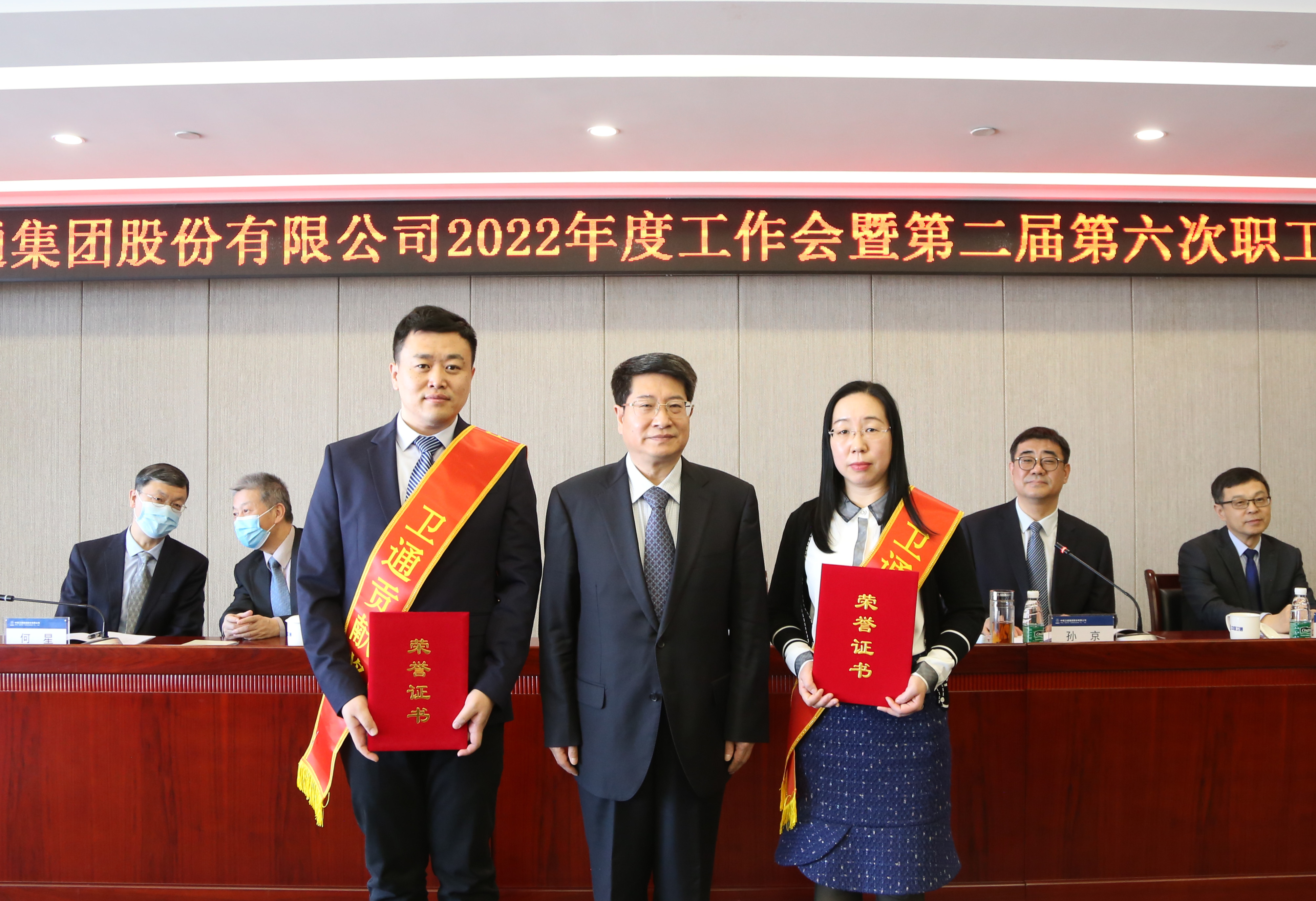 中國衛通董事長、黨委書記李忠寶,董事、總經理、黨委副書記孫京,董事程廣仁、李海東、何星,公司班子成員李月玲、王利軍、汪鴻濱、劉曉東、呂靜偉、陳文勝,調研員,總助,總法,科技委副主任,本部部門主要負責人,子公司主要領導,黨團代表、職工代表及獲獎代表通過現場及網絡形式參加會議。會議由孫京主持。