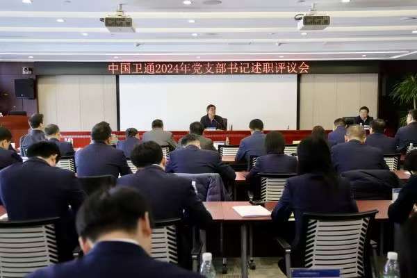 為深入貫徹落實黨的二十屆三中全會和集團公司第九次工作會議精神,全面壓緊壓實基層黨組織書記抓黨建工作主體責任,12月27日上午,中國衛通召開2024年黨支部書記述職評議會。公司黨委書記、董事長孫京點評并講話,公司黨委副書記李海金主持會議,公司領導班子,各黨支部書記及黨員群眾代表40余人參加會議。