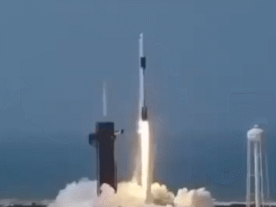 ▲ 獵鷹九號火箭托舉載人“龍”飛船起飛